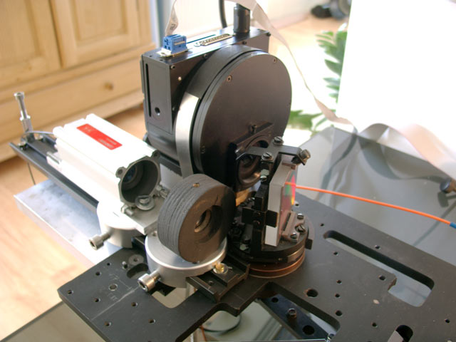 Bild 3:Mittlerweile habe ich noch ein zweites Gitter gleicher Größe von Zeiss mit 2604 Linien/mm (Blaze-Wellenlänge 220nm) auf dem Karussell montiert. (hier noch nicht zu sehen)